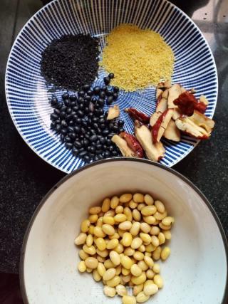 1. 准备黑豆和黑芝麻,分别用清水浸泡6小时以上。